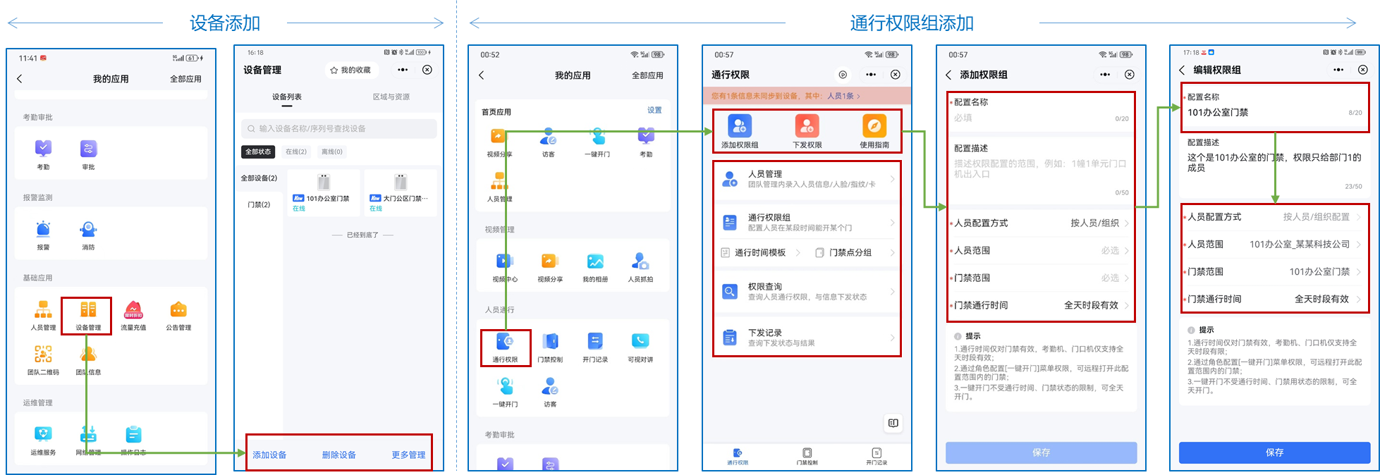 设备添加与人员通行权限添加