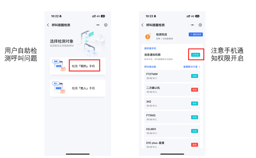 呼叫通知一键检测-App端