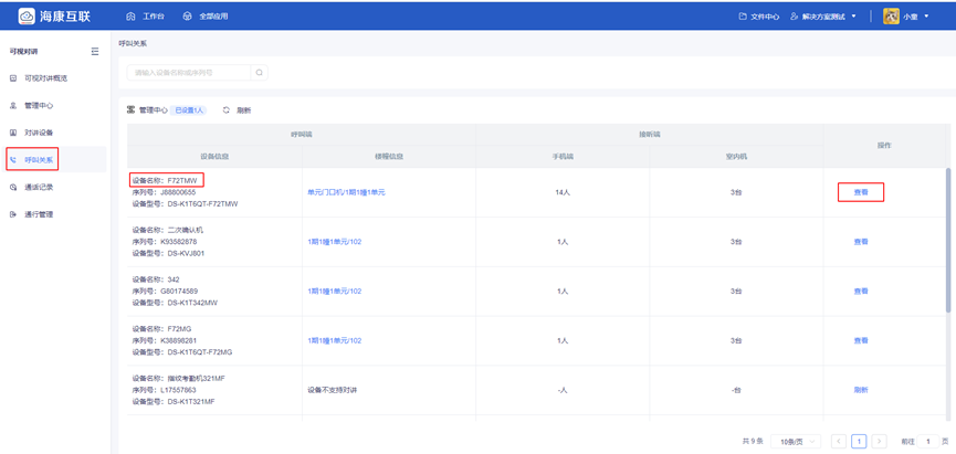 呼叫关系配置界面图-web端